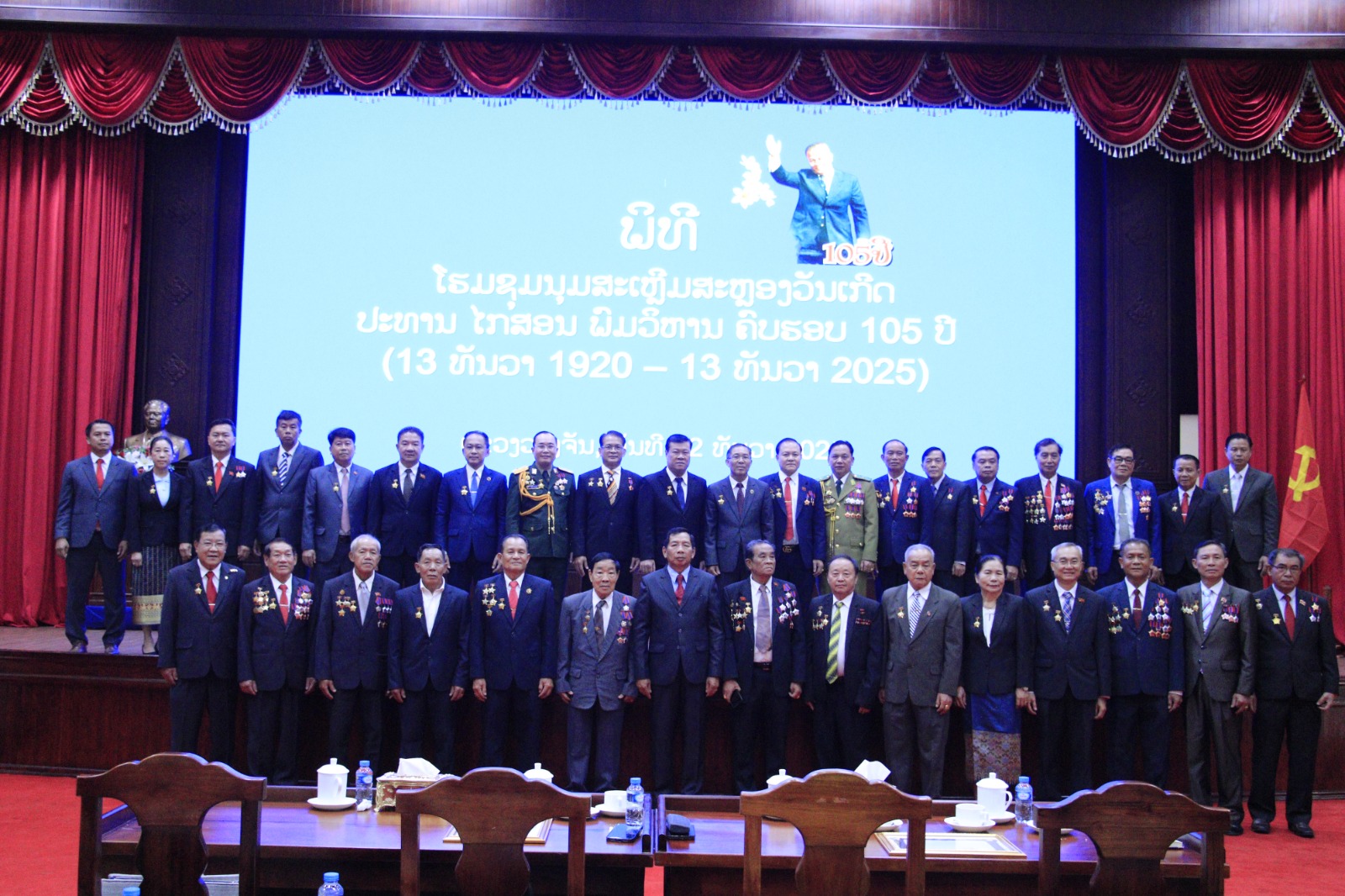 ພິທີໂຮມຊຸມນຸມ ສະເຫຼີມສະຫຼອງ ວັນເກີດປະທານໄກສອນ ພົມວິຫານ ຄົບຮອບ 105 ປີ ( 13 ທັນວາ 1920 – 13 ທັນວາ 2025 ) ຢູ່ແຂວງວຽງຈັນ ໄດ້ຈັດຂຶ້ນໃນວັນທີ 12 ທັນວາ 2025 ນີ້ ຢູ່ທີ່ ສະໂມສອນໃຫຍ່ຂອງແຂວງ. ໂດຍມີ ທ່ານ ຄຳພັນ ສິດທິດຳພາ ກຳມະການສູນກາງພັກ ເຈົ້າແຂວງວຽງຈັນ, ມີບັນດາການນໍາພັກ-ລັດຂັ້ນແຂວງ, ຂັ້ນເມືອງ, ອະດີດການນໍາ, ພະນັກງານບຳນານ, ທະຫານ-ຕຳຫຼວດ,ພະນັກງານ-ລັດ ຖະກອນ, ພ້ອມດ້ວຍນ້ອງນ້ອຍນັກຮຽນ ເຂົ້າຮ່ວມ.