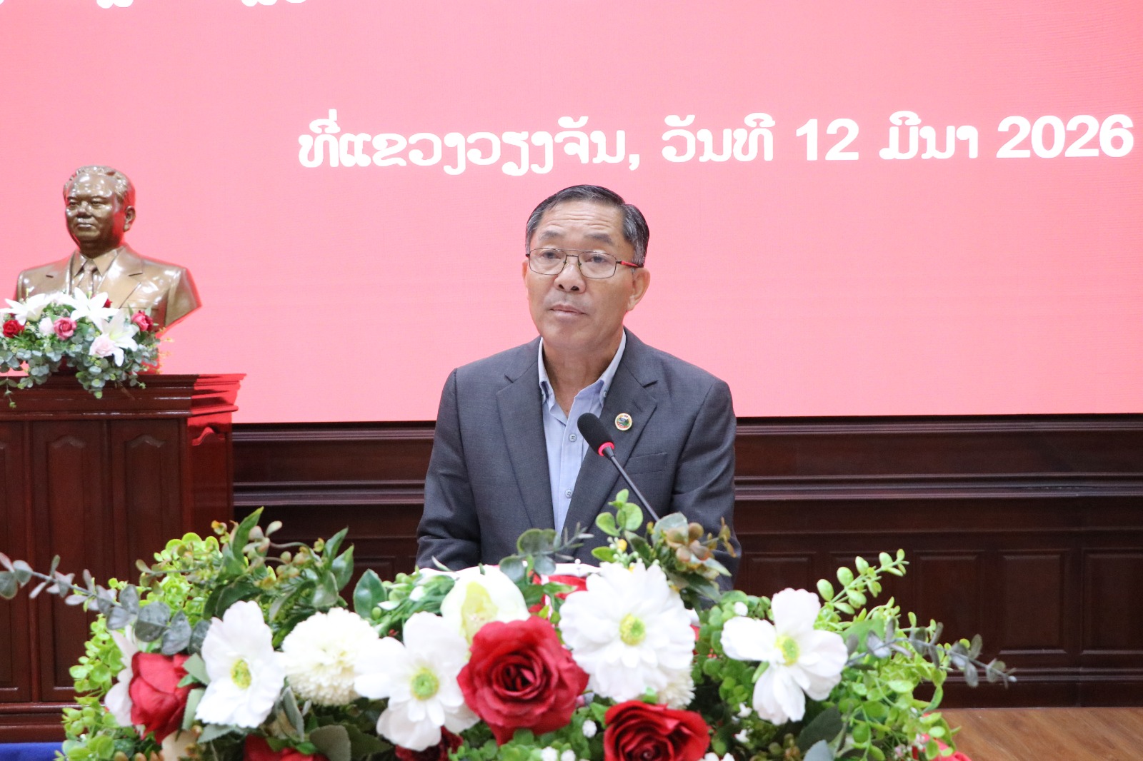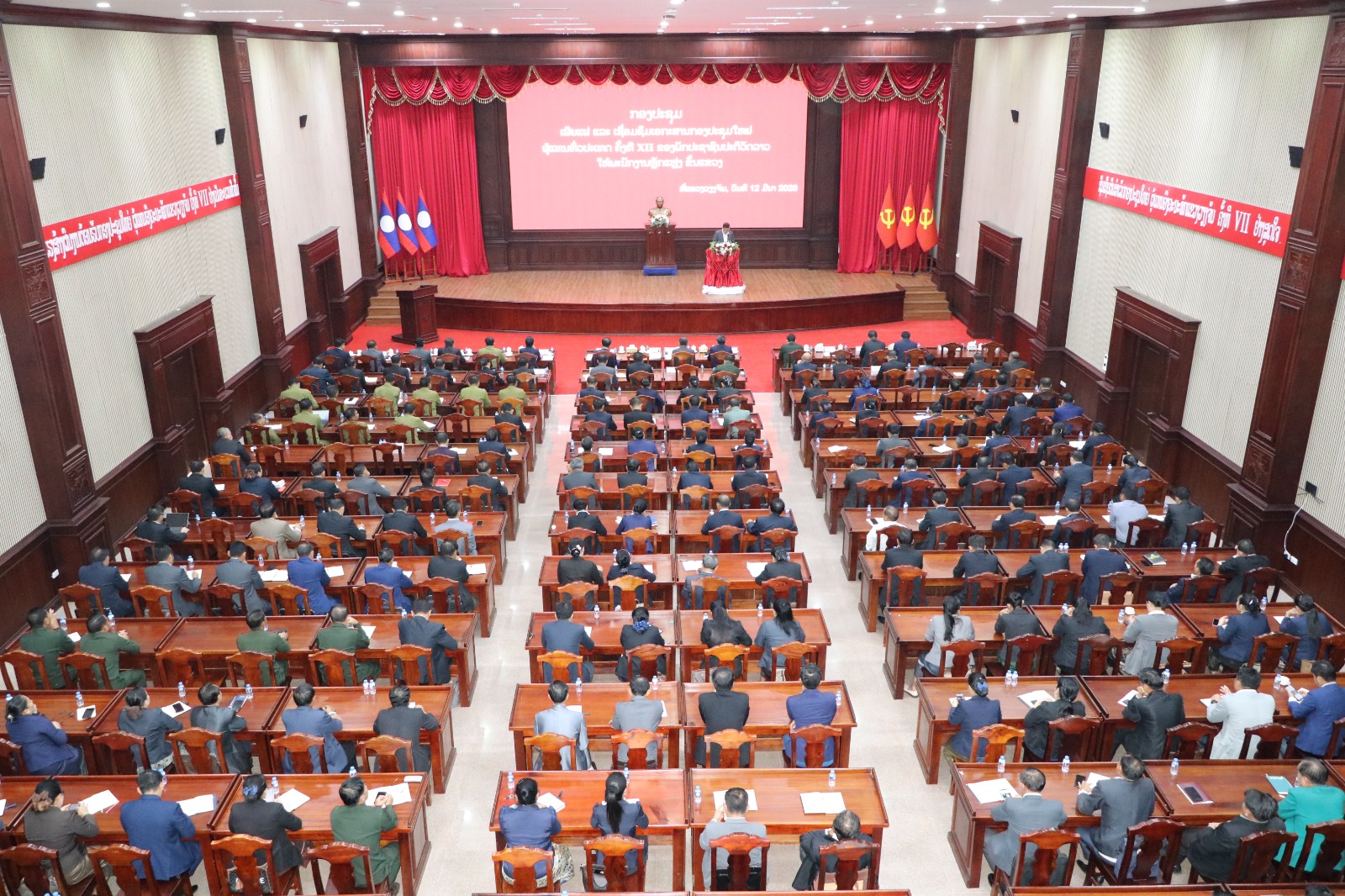 ໃນວັນທີ 12 ມີນາ 2026 ນີ້, ແຂວງວຽງຈັນ ໄດ້ຈັດກອງປະຊຸມເຜີຍແຜ່, ເຊື່ອມຊຶມເອກະສານກອງປະຊຸມໃຫຍ່ຜູ້ແທນທົ່ວປະເທດ ຄັ້ງທີ XII ຂອງພັກປະຊາຊົນປະຕິວັດລາວ ໃຫ້ແກ່ພະນັກງານຫຼັກແຫຼ່ງຂັ້ນແຂວງ, ໂດຍການເປັນປະທານຂອງ ສະຫາຍ ພູທະນູເພັດ ໄຊສົມບັດ ກໍາມະການສູນກາງພັກ, ເລຂາພັກແຂວງວຽງຈັນ, ມີຮອງເລຂາພັກແຂວງ, ກຳມະການປະຈຳພັກແຂວງ, ກຳມະການພັກແຂວງ, ເລຂາຄະນະພັກຮາກຖານ, ເລຂາໜ່ວຍພັກ, ຫົວໜ້າພະແນກການ, ພ້ອມດ້ວຍພະນັກງານຫຼັກແຫຼ່ງຂອງແຂວງ ແລະ ບັນດາເມືອງ ພາຍໃນແຂວງເຂົ້າຮ່ວມຮັບຟັງ.